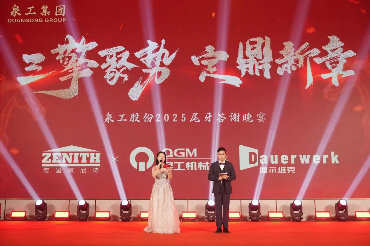 3. veebruari pärastlõunalFujian Quangong Machinery Co., Ltd.pidas Quanzhou Donghai Honor hotellis oma 2025. aasta kokkuvõtte ja auhinnatseremoonia ning uusaasta tähistamise teemal "Kolm mootorit lähenevad, loob uue peatüki". Ettevõtete juhid, võtmeklientide esindajad, kõik töötajad ja nende perekonnad kogunesid kokku, et vaadata läbi raske töö teekond, jagada arengusaavutusi ja oodata helget tulevikku.