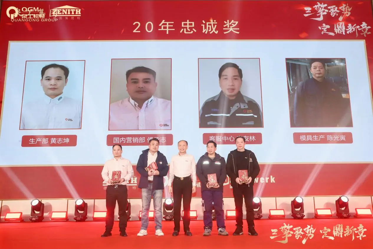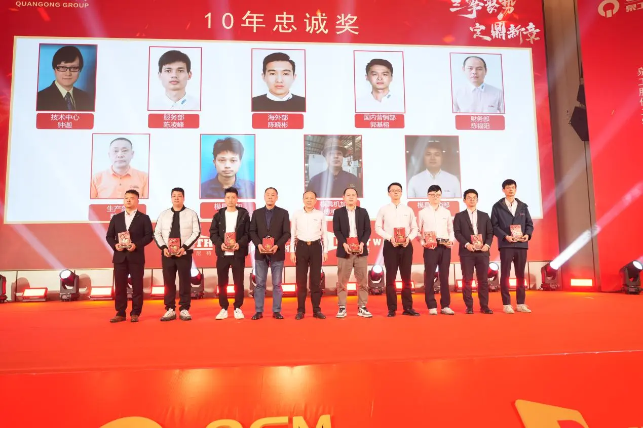 Aastakoosoleku ajal toimus ka suur auhinnatseremoonia 10-, 20- ja 30-aastaste lojaalsusauhindade jagamisel. Rühm töötajaid, kes on ettevõttega käsikäes kõndinud ja kokku kasvanud, astus lavale, demonstreerides täielikult Quangong Machinery Co., Ltd. pideva arengu ja püsiva ettevõttekultuuri tugevat alust.