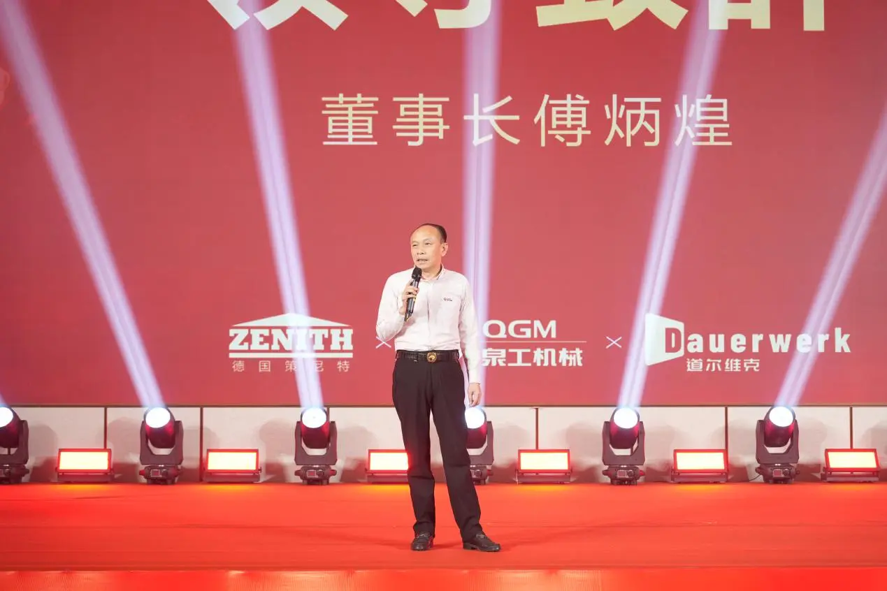 Partei filiaali sekretär ja Quangong Machinery Co., Ltd. esimees Fu Binghuang avaldas oma kõnes erakonnale ja riigile siirast tänu ettevõtte arenguks soodsa keskkonna loomise eest ning tänas kliente pikaajalise usalduse ja toetuse eest. Ühtlasi avaldas ta siirast tänu kõigile töötajatele kogu aasta jooksul tehtud raske töö eest. Juhataja mainis konkreetselt, et aastakoosoleku päeval töötasid paljud töötajad veel tootmisliinil ja projektiobjektidel, demonstreerides oma tegudega oma vastutustunnet ja pühendumust, kehastades täielikult ettevõtte vaimu, milleks on "uhkustada raske töö üle ja end praktilise tegevusega kehtestada".